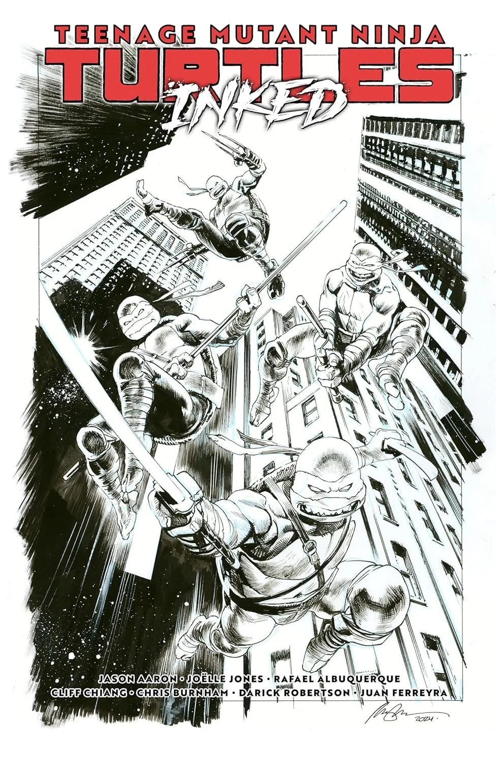 Catch a behind-the-scenes look at the first six issues of Jason Aaron's TMNT ongoing series, featuring the art of Joëlle Jones, Rafael Albuquerque, Cliff Chiang, Chris Burnham, Darick Robertson, and Juan Ferreyra!